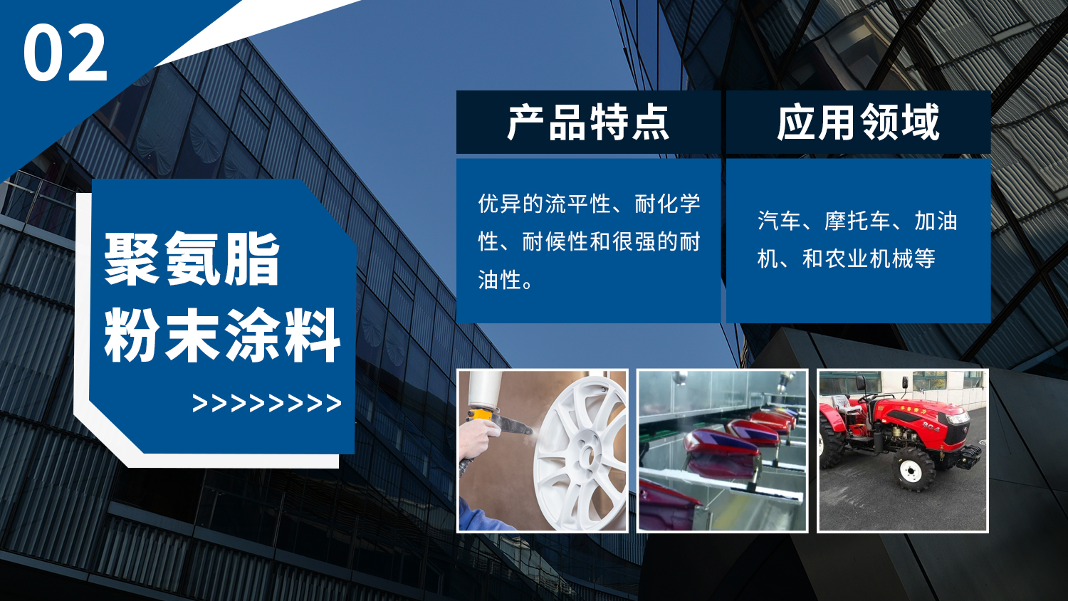 廣泛應(yīng)用于家用電器、汽車、建材、散熱器、自行車、汽車、家具、健身器材、管道等諸多領(lǐng)域,根據(jù)各個(gè)領(lǐng)域產(chǎn)品的表面涂裝的不同要求,為其量身定做設(shè)計(jì),批量生產(chǎn)不同系列產(chǎn)品。產(chǎn)品以優(yōu)異的性能,穩(wěn)定的品質(zhì)享譽(yù)全省、暢銷全國,并逐步走向國際市場。